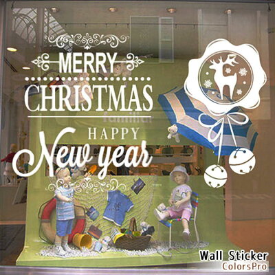 ウォールステッカー Mサイズ サンタ クリスマス 壁 窓 ウィンドウ ガラス シール おしゃれ かわいい ステーショナリー 雑貨 飾り 装飾 店内装飾 デコレーション オーナメント Merry Christmas サンタクロース トナカイ クリスマスツリー パーティー クリスマス J5