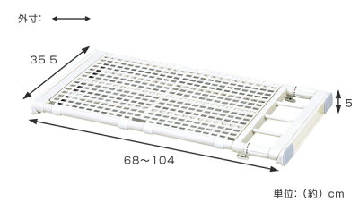 サイズ約 幅68〜104×奥行35.5×高さ5(cm)内容量1本材質パイプ:スチール(PP被覆)、メッシュ棚:ポリプロピレン、その他:ABS樹脂、EVA樹脂、ポリエチレン生産国中国製備考石膏ボード、砂壁、内部に空洞のある壁などには取付けないでください。