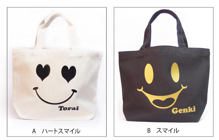 ランチバッグ ランチトートバッグ 名入れ 大人気のスマイル お名前入り キャンバストート■スマイル・バッグ・S■