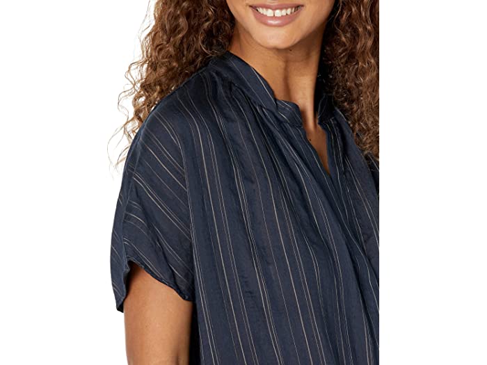 (取寄) ヴィンス Vince Short Sleeve Drapey Stripe Shirred Blouse Coastal/Sandshell