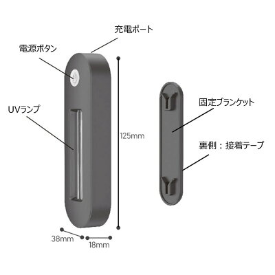 TRM-UVC001 コンパクト 除菌ライト 253.7nm 充電式 角度スイッチ OFFタイマー 搭載 簡単設置 UVライト 除菌 消毒 除菌器 家庭 オフィス トイレ ゴミ箱 下駄箱 (C) 紫外線ライト(UV-C)で除菌傾きを感知して自動点灯 TRM-UVC001 コンパクト 除菌ライト 充電式 角度スイッチ OFFタイマー 搭載 紫外線ライト(UV-C)で除菌傾きを感知して自動点灯し、5分後で消灯します簡単設置充電式用途 : トイレ、ゴミ箱、下駄箱などの除菌に 付属品 : 充電ケーブル、固定パーツ 質量(g) : 70 本体寸法(幅W×奥行D×高さH)(mm) : 38×18×125 バッテリー容量(mAh) : 1200 紫外線波長(nm) : 253.7JAN 4573246722280 除菌傾きを感知して自動点灯 OFFタイマー 搭載 トイレ、ゴミ箱、下駄箱などの除菌に 1