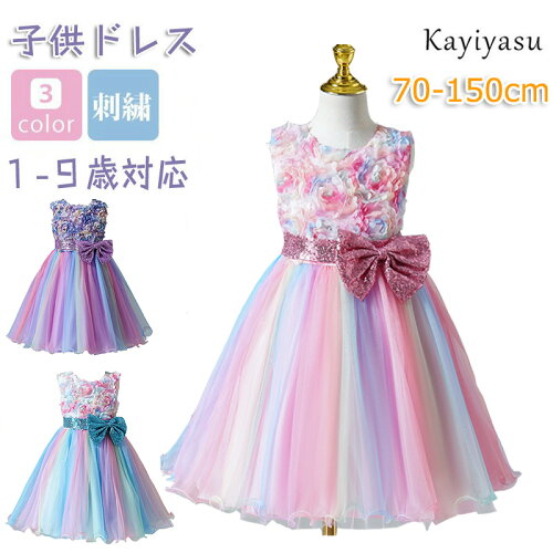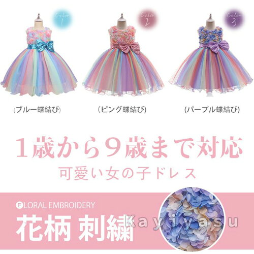 【即納】[kayiyasu]虹色子供ドレス 70-150CM パーティードレス 花柄 ベビードレス スバンコール ロングドレス リボンドレス ピアノ発表会 フラワーガール 誕生日 卒業式 発表会 演奏会 結婚式 入園式 ピアノ フォーマルドレス キッズ