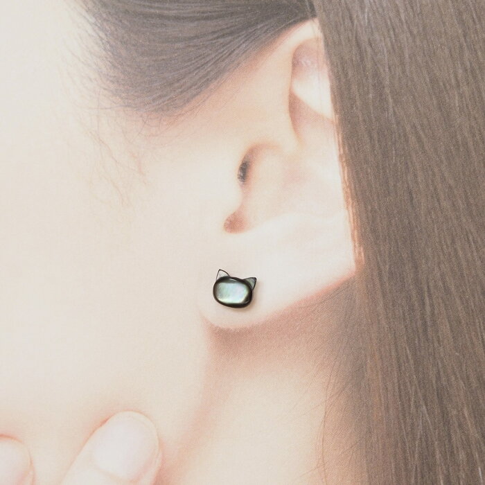 黒猫 セカンドピアス 純チタン 太軸 片耳 アレルギー 金属アレルギー 対応 ピアス 軸太 チタン ロングポスト ゲージ 16G 18G 20G かわいい おしゃれ BlueHill 黒猫 猫 黒蝶貝 シェル ねこ 黒 ブラック SSS