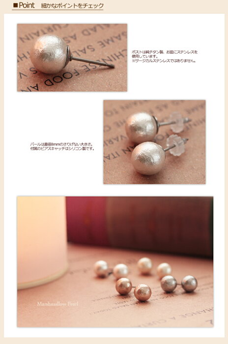 パール ピアス 金属アレルギー 純チタン /商品名:【純チタンピアス】マシュマロパールスタッドピアス