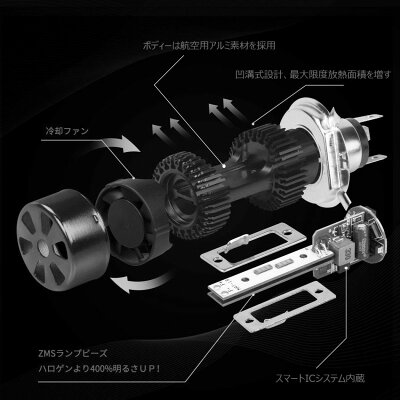 ◆「瞬間起動」HIDでは出来なかった即時点灯やハイ・ロービームの瞬間切替が可能に! ◆「ZMSランプビーズ」ZMSランプビーズにする事により、安定した動きとムラのない拡散性と?力照射を実現しバフォーマンスが大幅にUPしました! ◆「車検対応」テスター検査や、実際の車検レーンでの評価を行ないHiビーム時の集光状態や、検査基準値(カンデラ)を大幅に上回るLED素子の配置を導き出しています。