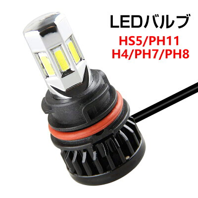 【8月25日限定 P10倍】LED バルブ HS5 PH11 H4 H6 PH7 PH8 HI LO 六面発光 交流 直流 バイク スクーター 3000LM 30W 6500K 一年保証 リードex/アドレスv50/レッツ5などに