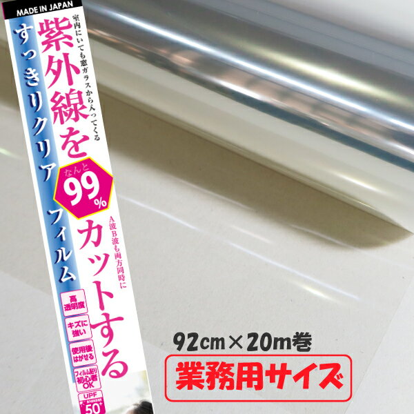 紫外線を99%カットするすっきりクリアフィルム無色透明タイプUVカット99%シールサイズ:92cm×20m巻UPF50+UVカットフィルム【業務用】