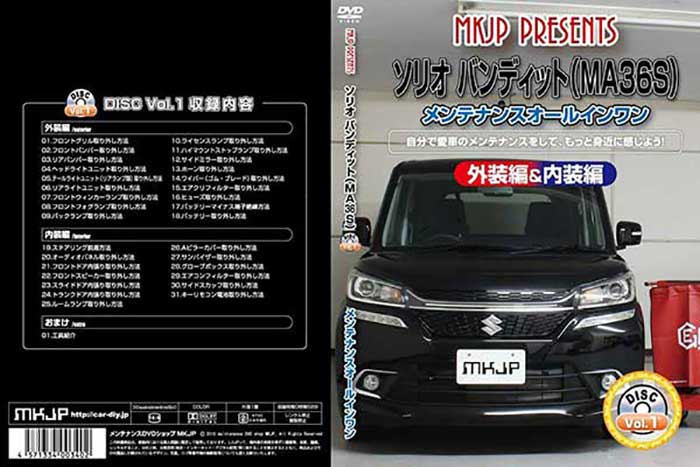 ソリオ バンディット MA36S メンテナンスDVD 内装&外装のドレスアップ改造 Vol.1【通常版】〔メール便送料無料〕工賃節約 車パーツ脱着 パーツ交換 解説DVD 外し方、バラし方